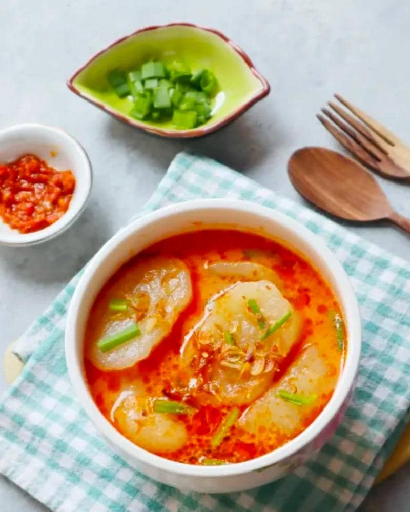 Laksan adalah makanan khas Palembang yang cocok untuk sarapan. Bahan utamanya adalah tepung sagu dan ikan, dengan rasa mirip pempek. Laksan disajikan dengan kuah santan kental yang pedas, berbeda dengan pempek yang menggunakan cuko. Bentuk laksan adalah lingkaran pipih. Kamu bisa mencobanya langsung dari rumah dengan mengunjungi e-commerce yang menyediakan makanan khas Palembang. Harganya berkisar antara Rp18.000 hingga Rp25.000.