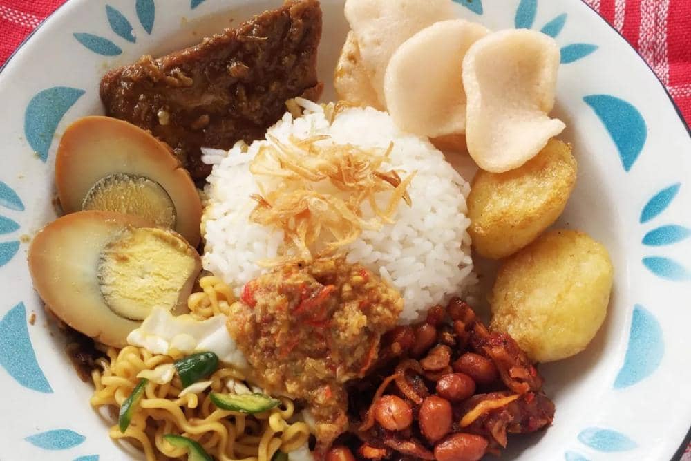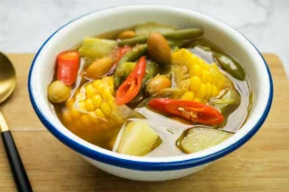 Hidangan mengenyangkan dan kaya serat ini menggunakan sayuran seperti labu siam, kacang panjang, dan daun melinjo. Penambahan telur rebus memberikan sumber protein yang mudah dicerna.