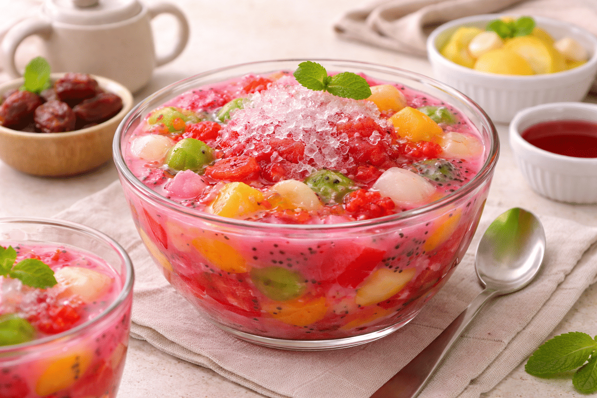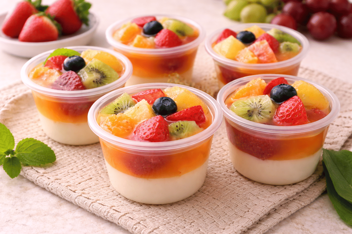 Puding buah bisa menjadi pilihan takjil yang menyehatkan. Gunakan buah-buahan yang aman seperti stroberi, pisang, atau buah naga. Hindari buah nanas dan pepaya muda karena bisa memicu kontraksi. Batasi konsumsi puding karena kandungan gulanya tinggi.