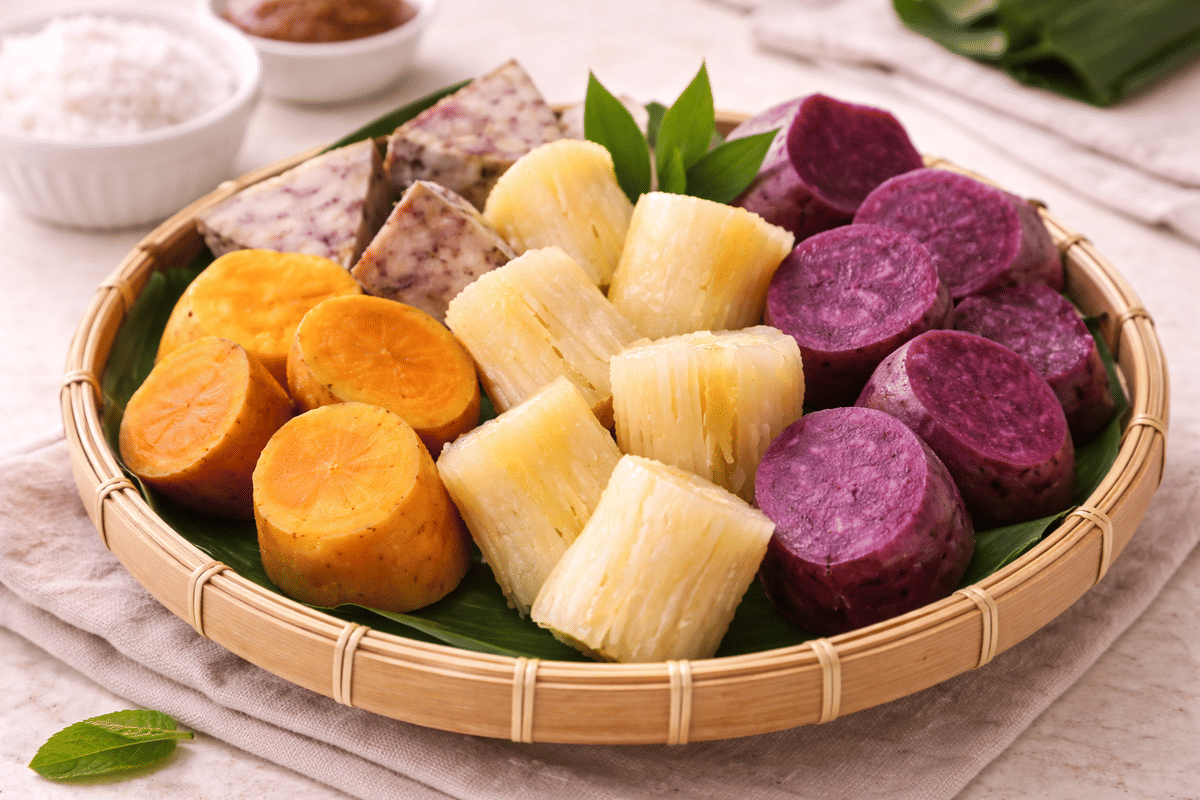 Rebusan umbi seperti ubi jalar, singkong, dan talas memiliki rasa manis alami dan tekstur lembut. Makanan ini kaya akan nutrisi yang bermanfaat untuk perkembangan janin dan energi ibu.