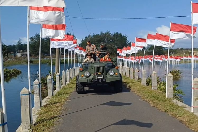 “Bendera dikibarkan sepanjang sekitar dua kilometer dari Jalan Daendels hingga bibir pantai,” kata Adi.