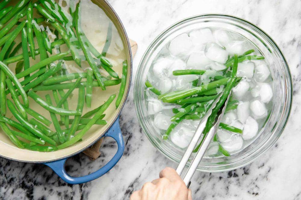 Teknik ini bukan hanya untuk estetika, tetapi juga membuat sayur lebih renyah dan nutrisinya tetap terjaga. Caranya cukup mudah: rebus air hingga mendidih, lalu masukkan sayuran seperti brokoli, buncis, pokcoy, atau asparagus. Rebus selama 2-3 menit saja. Setelah itu, angkat dan segera masukkan ke mangkuk berisi air es agar proses pematangan berhenti.