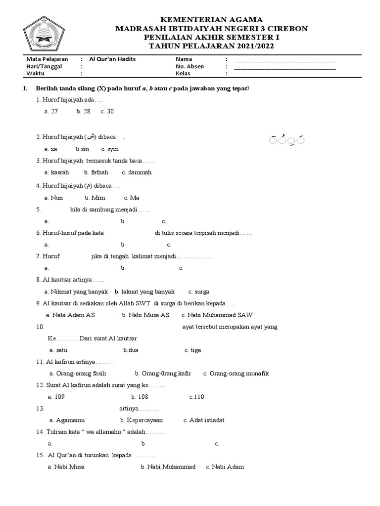 Kumpulan Soal Ujian Al-Quran Hadist Kelas 6