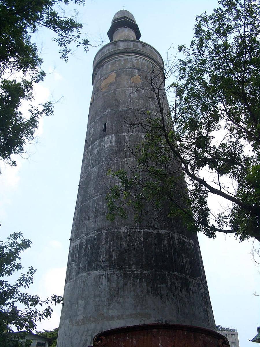 Ciri khas yang paling ikonik adalah Menara Guangta setinggi 36 meter yang berbentuk silinder polos dengan puncak runcing, sangat berbeda dengan gaya pagoda China yang biasanya bertingkat-tingkat. Menara berbahan batu bata ini memiliki fungsi ganda yang unik, yakni sebagai tempat berkumandangnya azan sekaligus mercusuar pemandu kapal dagang di masa lalu. Perpaduan tiang kayu berwarna merah yang megah dengan menara minimalis ini menjadikan Masjid Huaisheng sebagai simbol nyata pertemuan budaya Arab dan Tiongkok yang sangat indah.