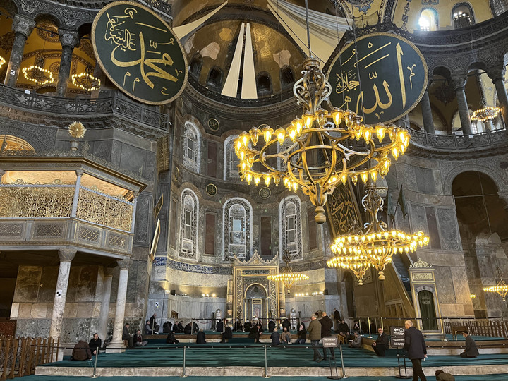 Dibangun pada tahun 537 oleh Kaisar Justinian sebagai gereja Bizantium, Hagia Sophia menjadi bukti kejeniusan arsitektur Romawi Timur. Setelah menaklukkan Konstantinopel, bangunan ini diubah menjadi masjid oleh Fâtih Sultan Mehmed atau Mehmed II. Selama berabad-abad, mosaik emasnya sempat ditutup dengan motif Islam, lalu dibuka kembali ketika diubah menjadi museum pada 1935. Pada 2020, statusnya kembali menjadi masjid.