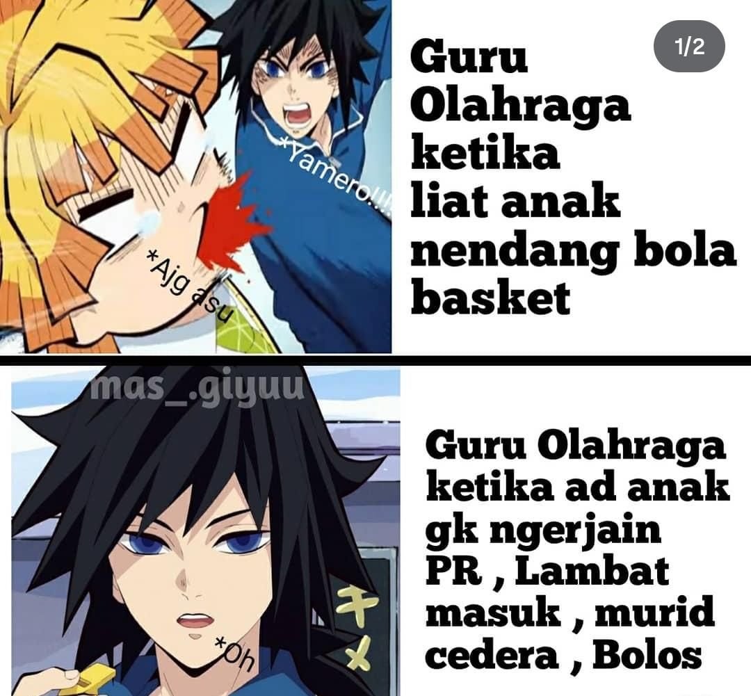 Meme ini menggambarkan situasi di mana guru olahraga tidak sesuai dengan bayangan umum, tetapi justru memiliki penampilan yang menarik dan sehat.Guru olahraga kalau udah soal bola basket ditendang, reaksinya cepet banget. Kayak ada alarm otomatis!