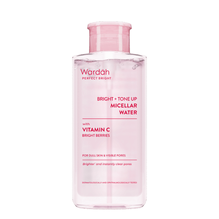 Produk pertama dalam daftar ini adalah Wardah Perfect Bright Tone Up Micellar Water. Produk ini berfungsi sebagai pembersih wajah yang mampu mengangkat makeup, kotoran, dan minyak berlebih secara lembut. Formulanya diperkaya dengan Vitamin C serta kombinasi 4X bright berries yang membantu menyegarkan sekaligus membuat kulit tampak lebih cerah. Selain itu, kandungan ekstrak timunnya juga memberikan sensasi segar setelah wajah dibersihkan.
