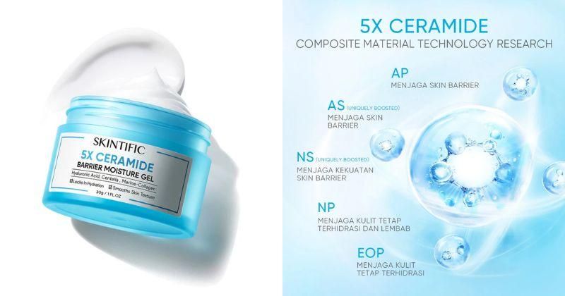 Mengandung 11X Acne Power Fighter yang efektif dalam merawat kulit berjerawat, mengurangi noda bekas jerawat, serta menenangkan kulit yang kemerahan. Dilengkapi dengan 5X Ceramide Complex untuk memperbaiki skin barrier dan menghaluskan tekstur kulit. Harga sekitar Rp 130.000 dalam ukuran 30 gr.Skintific 5X Ceramide Barrier Moisturizer Gel