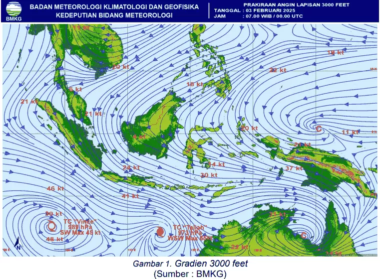 Selain itu, saat ini telah terdeteksi bibit siklon tropis 91S di wilayah selatan. Hal ini memengaruhi meningkatnya kecepatan angin di Jawa Timur. Dari analisis angin gradien pada ketinggian 3.000 kaki pada tanggal 19 Januari 2026 lalu, angin dominan bertiup dari arah barat dengan kecepatan mencapai 32 knot dan membentuk pola konvergensi.