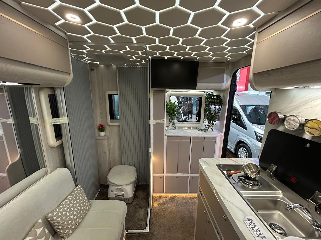 Seluruh pengaturan kelistrikan terpusat pada control panel layar sentuh di area belakang, sementara kabin depan tetap dalam kondisi standar tanpa perubahan. Meskipun desain eksterior melalui riset dan pengembangan, bagian interior bisa disesuaikan dengan preferensi pemilik. Misalnya, jika tidak membutuhkan toilet, ruang tersebut bisa diubah menjadi area penyimpanan tambahan atau diperluas menjadi ruang istirahat.