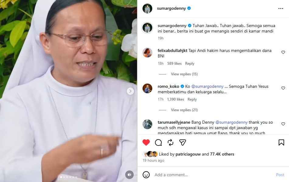 Kabar baik ini juga mendapat respons dari Denny Sumargo, yang mengungkapkan rasa syukur atas hasil yang diraih melalui podcastnya bersama Suster Natalia, bendahara CU Paroki Aek Nabara. Densu mengaku terharu dan bahkan menangis saat mengikuti perkembangan kasus ini. Ia menulis di akun media sosialnya bahwa Tuhan telah menjawab doa banyak orang.