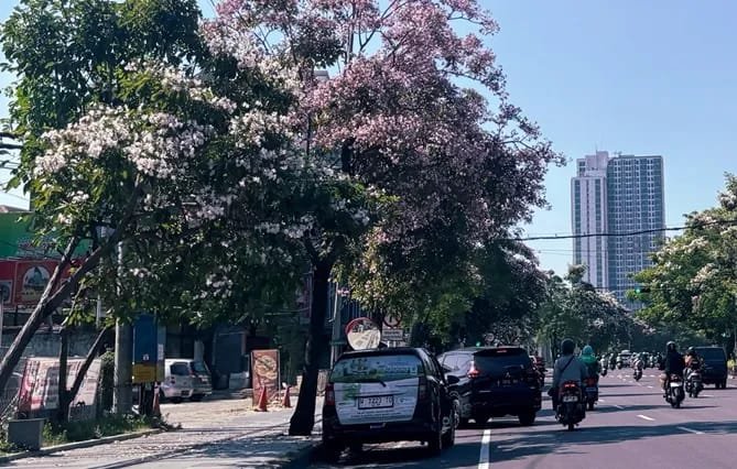 Namun, di Surabaya, bunga-bunga Tabebuya menawarkan palet warna yang lebih kaya, mulai dari putih, violet, hingga merah muda yang lembut, dan kuning keemasan yang memancarkan kehangatan. Keindahan yang menggugah emosi, yang hanya bisa ditemukan di kota ini saat bulan September tiba.