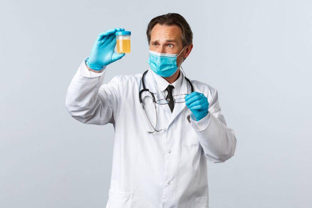 Kondisi ini disebut juga sebagai retrograde ejaculation. Pemeriksaan ini dilakukan untuk mengetahui apakah terdapat sperma dalam urin. Tanda yang muncul biasanya adalah saat ejakulasi air mani yang keluar sangat sedikit, karena sperma berbalik masuk ke dalam kandung kemih. Hal inilah juga yang membuat urin jadi keruh saat buang air kecil.