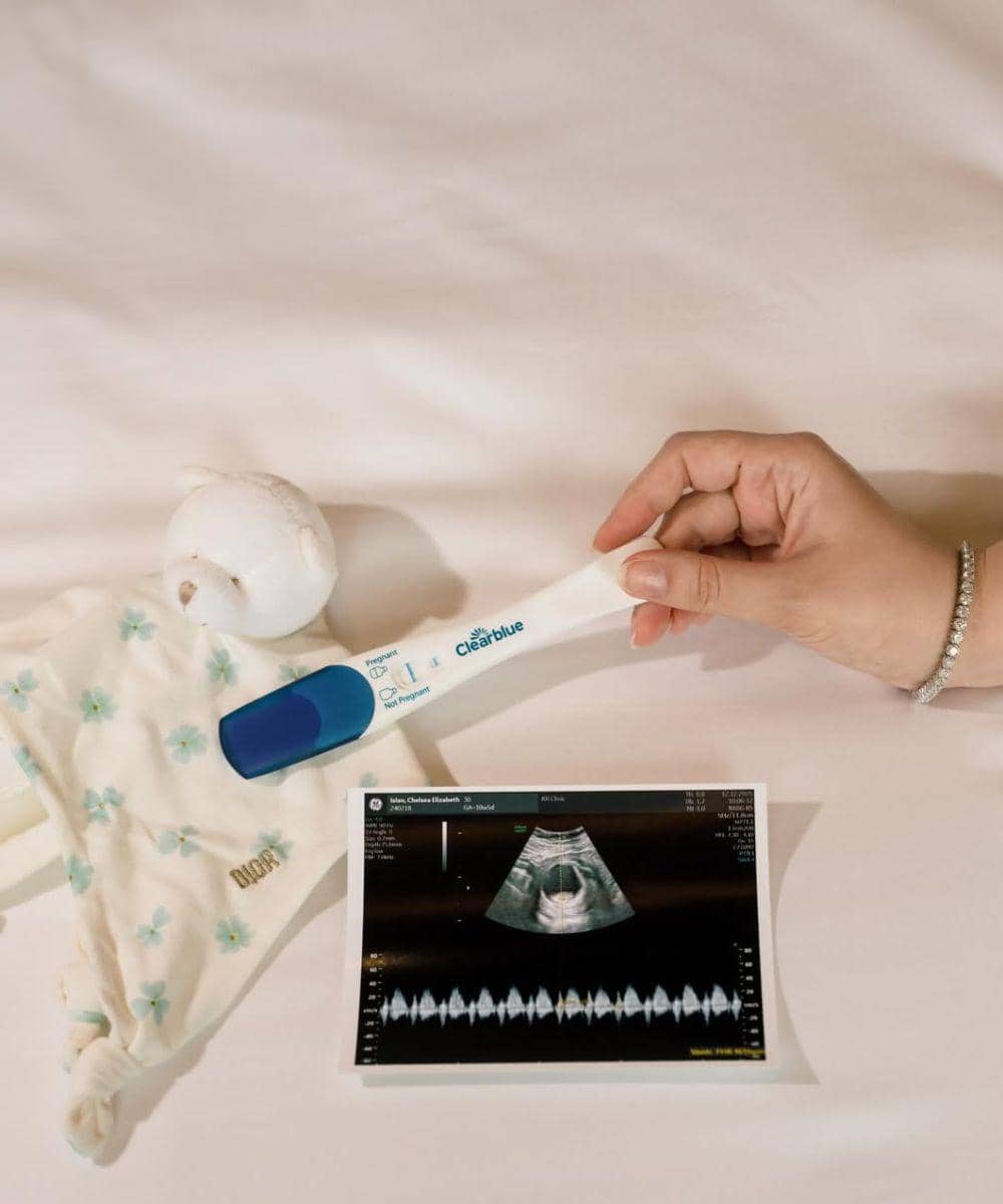 Tak hanya foto pemotretan, Chelsea juga membagikan potret test pack dan hasil USG kehamilan pertamanya. Foto tersebut ditata estetik dengan sentuhan warna lembut dan properti bayi. Hasil USG yang memperlihatkan si Kecil menjadi salah satu detail paling menyentuh.