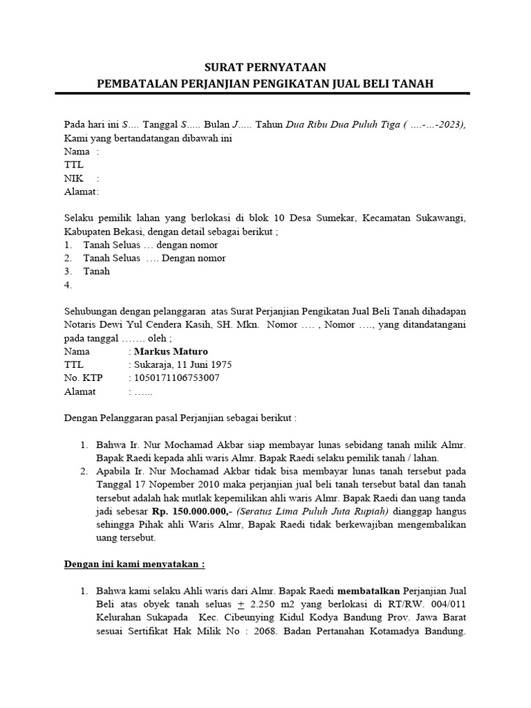 Dalam pembicaraan tersebut terdakwa menawarkan harga tanah seluas 1000m2 (seribu meter persegi) beserta Villa adalah sebesar Rp 16.000.000.000 (enam belas milyar rupiah) dan harga masih bisa dinego. Kemudian saksi korban melakukan penawaran harga dan disepakati harga jual beli adalah Rp 14.600.000.000 (empat belas muilyar enam ratus juta rupiah).
