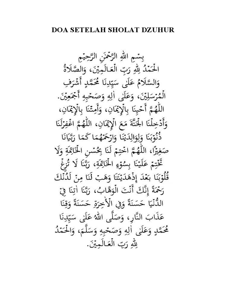 Bacaan Doa Setelah Sholat Dzuhur