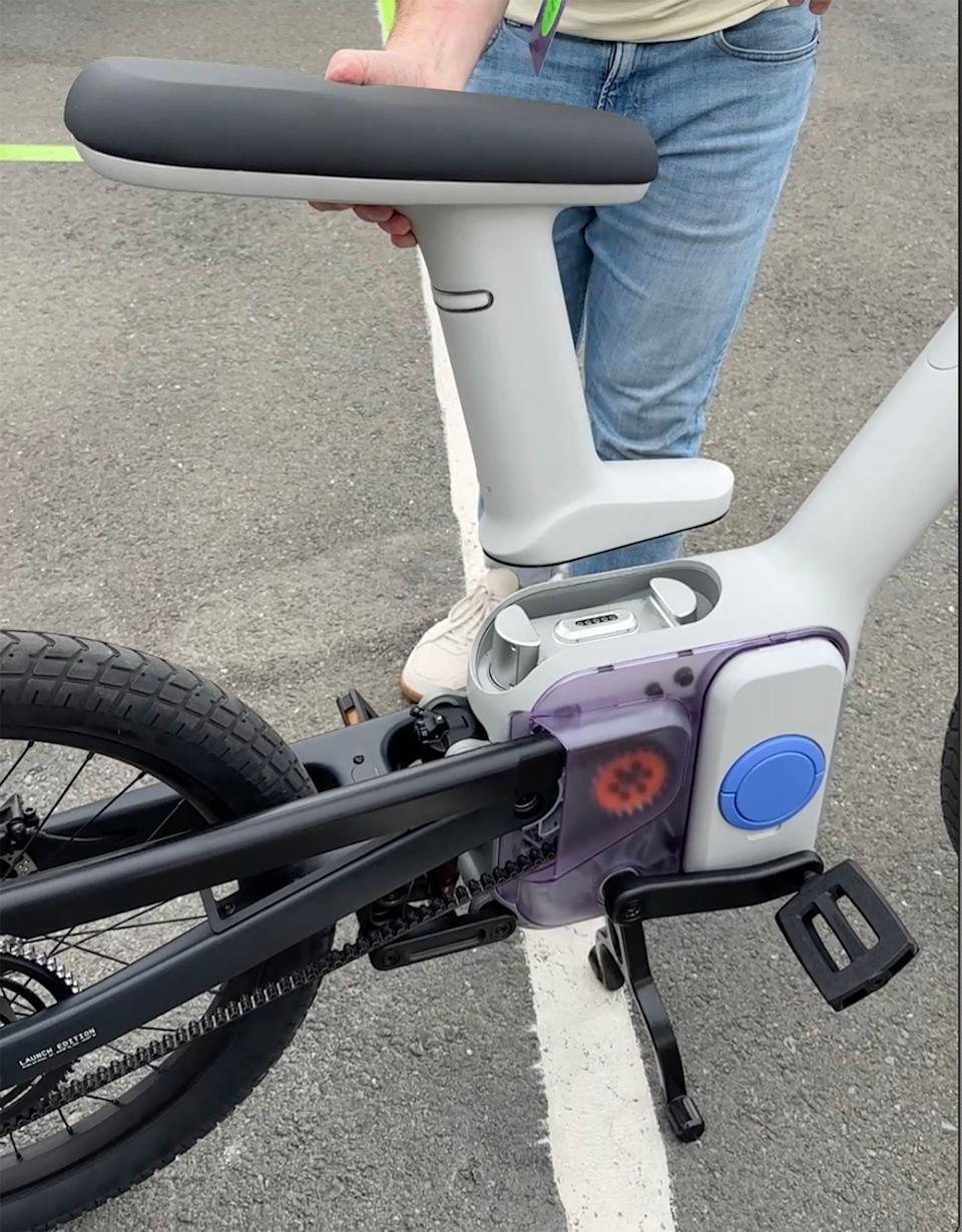 Kursi yang berbeda dapat dengan mudah ditukar tanpa alat tambahan. Sebaliknya, sebuah tombol pada tampilan layar sentuh sepeda mengontrol mekanisme kait yang melepaskan jok. Ia hanya hadir dalam satu ukuran rangka, namun ia juga mengatakan ia harus mampu beradaptasi dengan “berbagai ukuran tubuh”, berkat ukuran dan gaya kursi yang berbeda.