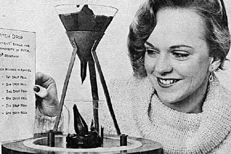 Eksperimen ini dimulai pada 1927 dan sejak itu diawasi secara ketat oleh sejumlah ilmuwan. Penelitian tersebut mengamati zat bernama pitch, yang tampak seperti benda padat, tetapi sebenarnya merupakan cairan dengan tingkat kekentalan sangat tinggi. Pitch ditempatkan di dalam sebuah corong, lalu para peneliti mengamati tetesan yang jatuh dari corong tersebut. Proses ini berjalan sangat lambat, bahkan satu tetesan saja bisa memerlukan waktu bertahun-tahun.