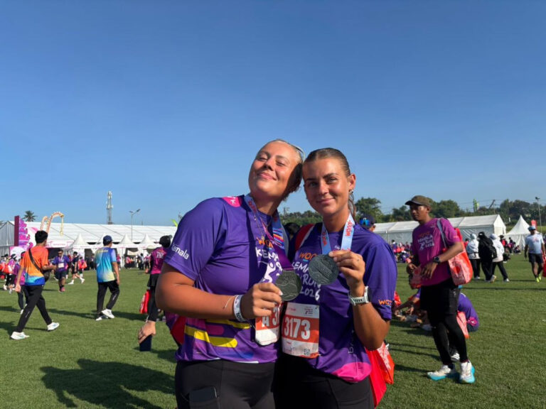 Keduanya mengikuti kategori 10K dan terkesan dengan suasana sepanjang rute. “Melihat semua orang memakai kaos acara saat berlari itu sangat menyenangkan. Matahari terbitnya juga indah sekali,” tambah mereka.
