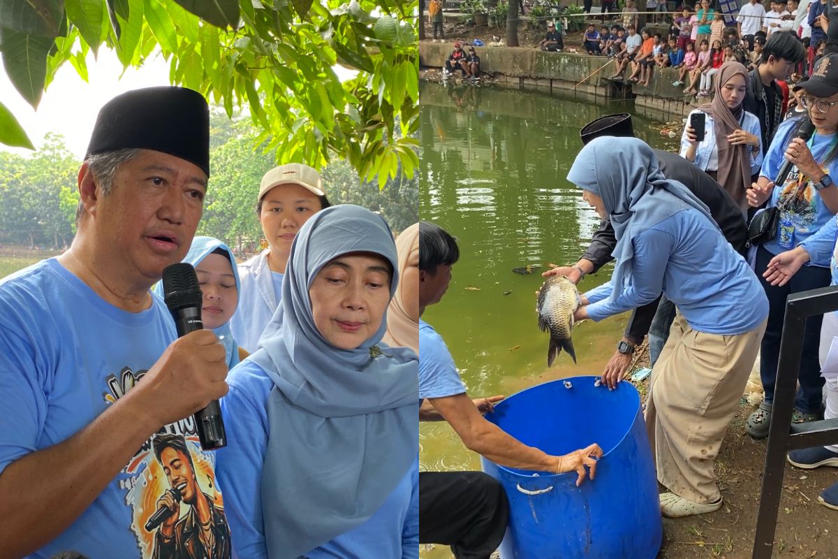 “Hari ini kita lakukan di sebelah makam Vidi Aldiano di Tanah Kusir. Ada sekitar 2,5 kuintal ikan yang ditebar, seperti ikan mas, bawal, nila, dan lele,” ujar Harry Kiss saat berada di lokasi kegiatan tersebut pada Jumat (17/4/2026).