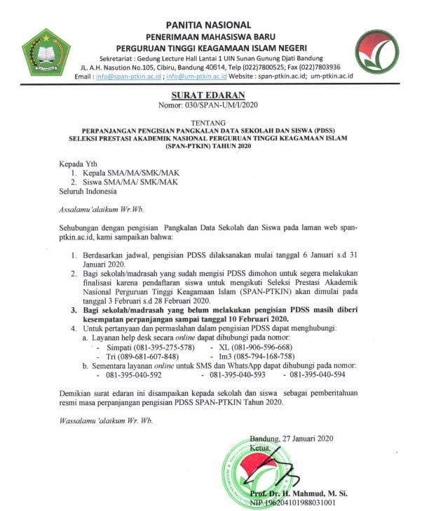 Tahapan ini menjadi krusial karena PDSS merupakan gerbang utama seleksi masuk PTKIN tanpa tes dan tanpa biaya. Panitia menegaskan, siswa berprestasi yang ingin mengikuti jalur SPAN-PTKIN 2026 wajib memastikan sekolah telah mendaftarkan dan memfinalisasi PDSS. Tanpa PDSS yang valid dan terkunci, siswa otomatis gugur dari proses seleksi nasional berbasis prestasi tersebut.