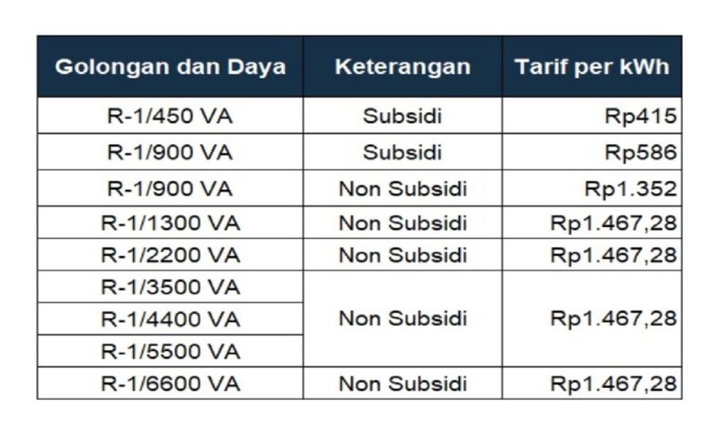- R1 – 1.300–2.200 VA (Rp1.444,70/kWh)