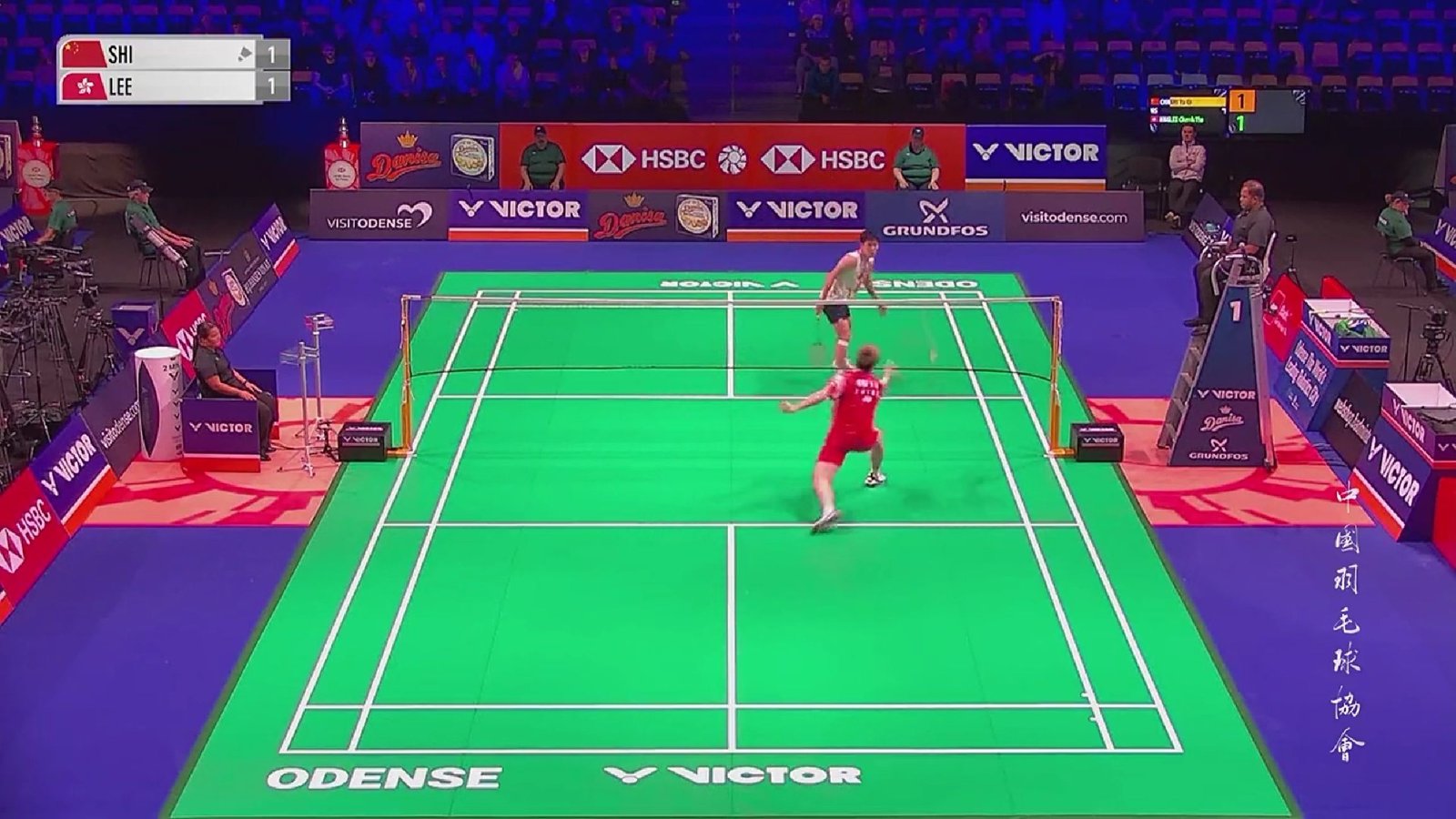 Tampil di Jyske Bank Arena, Odense, Denmark, Shi menang dua gim langsung 21-10, 21-11 atas Lee dalam tempo 34 menit.