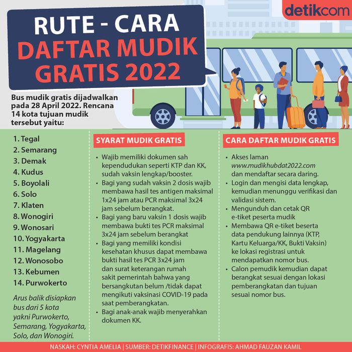 Program ini menawarkan 352 kuota untuk pemudik yang ingin melakukan perjalanan melalui rute Jawa Tengah dan Jawa Timur. Pendaftaran online telah dibuka sejak tanggal 2 Maret hingga 10 Maret 2026 pukul 23.59 WIB. Calon peserta dapat mendaftar melalui link resmi berikut: