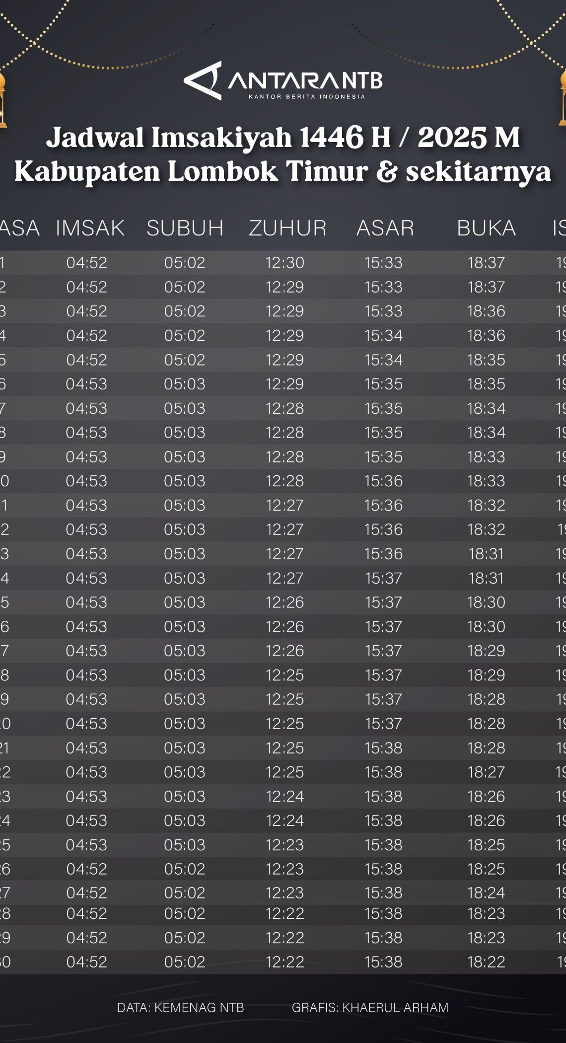 Berikut adalah jadwal imsak dan buka puasa untuk wilayah Lombok Tengah selama bulan Ramadan 1447 H/2026 M: