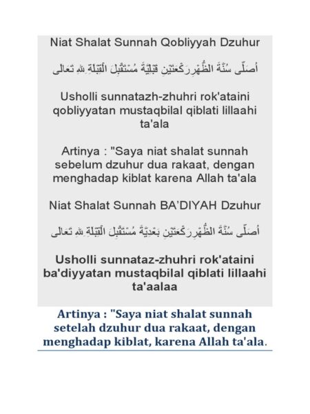 Niat dan Tata Cara Sholat Sunnah Sebelum Dzuhur