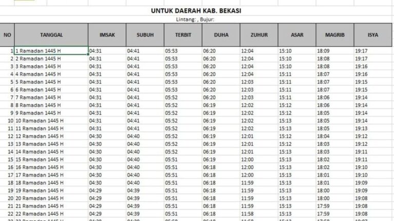 Jadwal Lengkap Imsakiyah untuk Kota Bekasi
