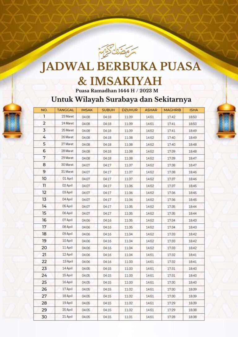 | 23 | 23 Ramadhan 1447 H (Jumat, 13/3/2026) | 04:32 | 04:42 | 05:54 | 06:21 | 12:05 | 15:10 | 18:09 | 19:18 |