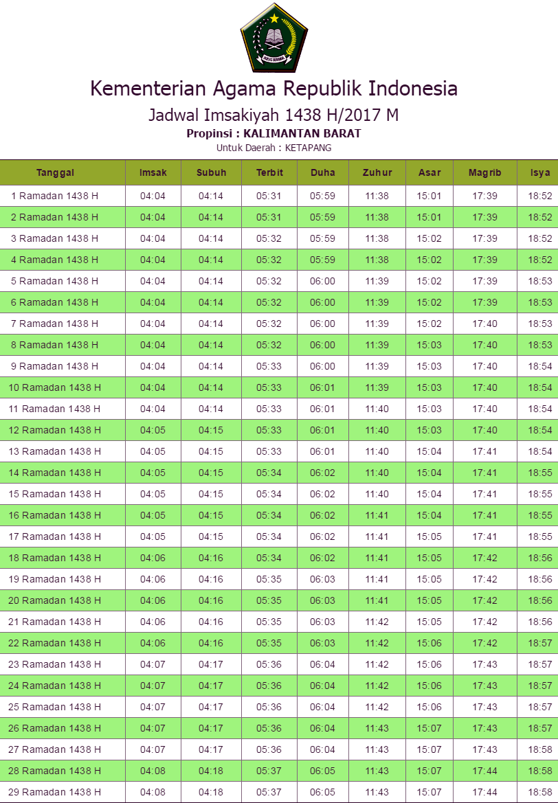 Berikut adalah estimasi jadwal imsakiyah Ramadan 2026 (1447 H) untuk Kabupaten Ketapang dan sekitarnya: