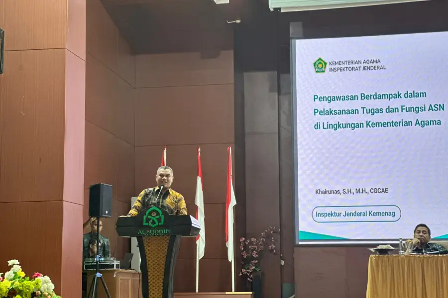 Makassar (IMR) – Inspektur Jenderal Kementerian Agama (Irjen Kemenag), Khairunas, melanjutkan rangkaian Safari Pengawasan di Provinsi Sulawesi Selatan dengan menyampaikan penguatan nilai-nilai integritas kepada Aparatur Sipil Negara (ASN). Kegiatan ini dilakukan di Kanwil Kemenag Sulsel, Universitas Islam Negeri (UIN) Alauddin Makassar, dan Balai Diklat Keagamaan Makassar.