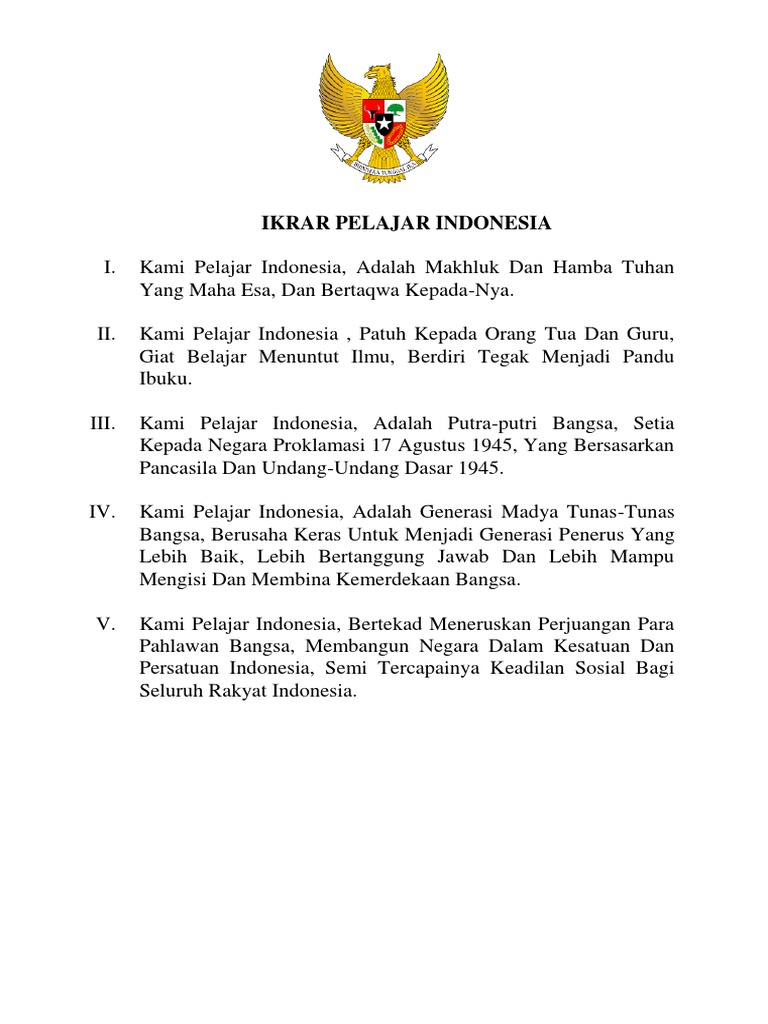 Ikrar Pelajar Indonesia berisi komitmen pelajar untuk: