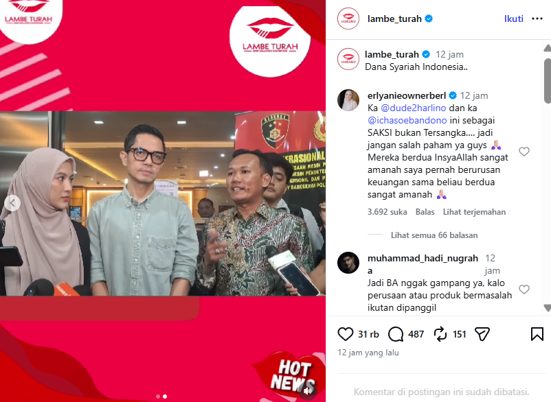 Dude Harlino dan Alyssa Soebandono baru saja menjalani pemeriksaan oleh Bareskrim terkait kasus dugaan penipuan dan penggelapan yang melibatkan PT Dana Syariah Indonesia (DSI). Keduanya dihadapkan dengan 53 pertanyaan, yang mengungkap peran mereka dalam kasus ini.
