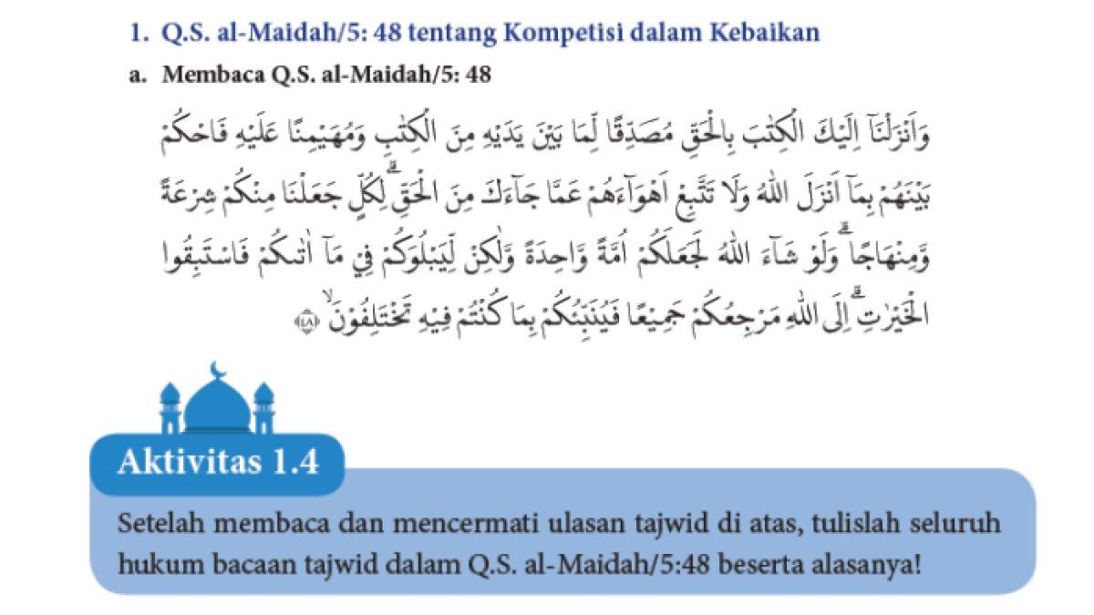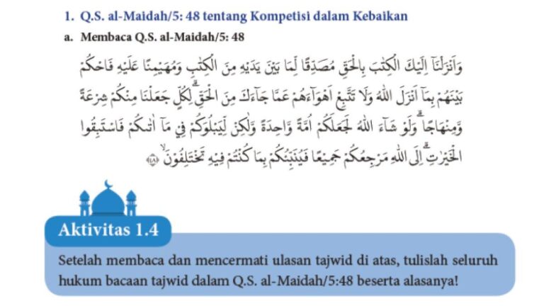 Pada kesempatan kali ini, kita akan membahas kunci jawaban untuk soal-soal yang terdapat di halaman 87 dalam buku Pendidikan Agama Islam dan Budi Pekerti Kelas 10 berdasarkan Kurikulum Merdeka. Topik utama yang dibahas adalah tentang ayat Q.S. al-Maidah/5:2 yang merupakan bagian dari kegiatan siswa Aktivitas 4.1. Berikut penjelasan lengkap mengenai ayat tersebut.