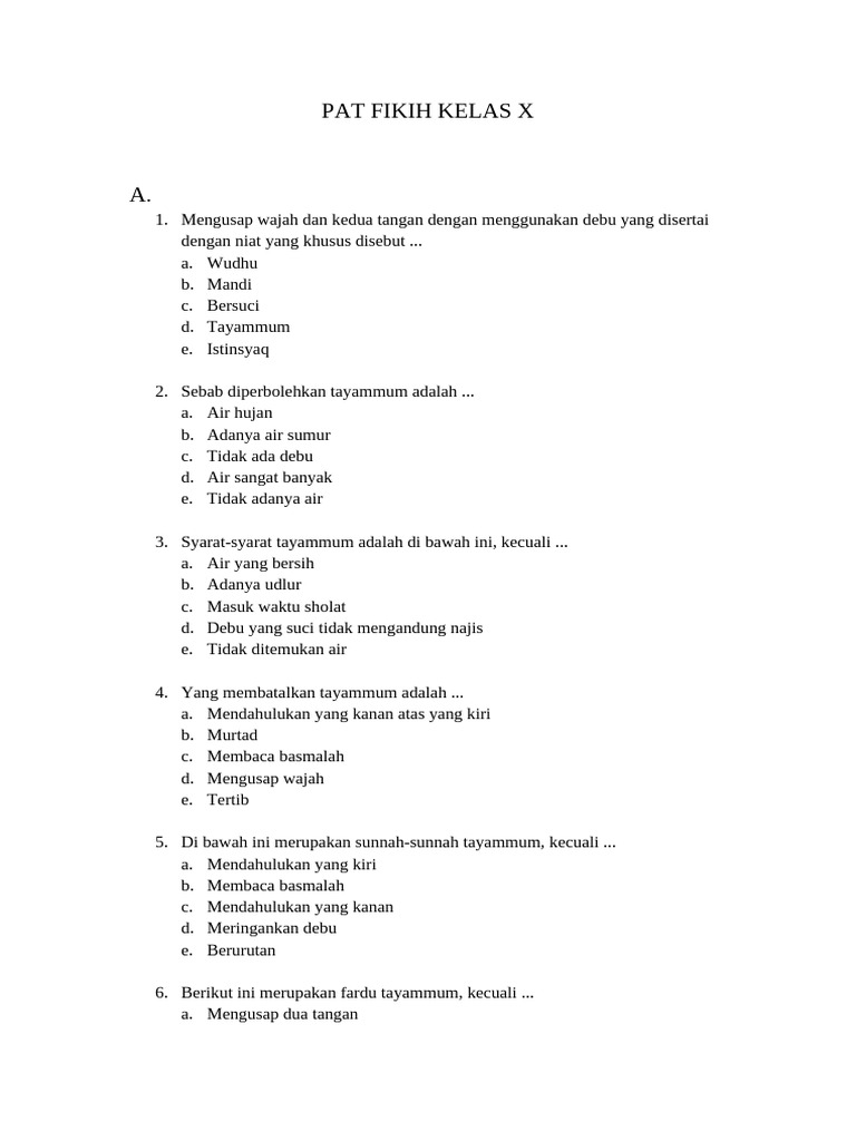 Berikut adalah materi latihan Soal Asesmen Sumatif Akhir Semester (ASAS) atau Penilaian Akhir Tahun (PAT) Kelas 8 SMP Semester 2 Kurikulum Merdeka tahun 2026. Menghadapi ASAS atau PAT Fikih kelas VIII tentu membutuhkan persiapan yang matang. Salah satu cara terbaik adalah dengan mengerjakan contoh soal dan latihan yang relevan dengan materi yang diujikan.