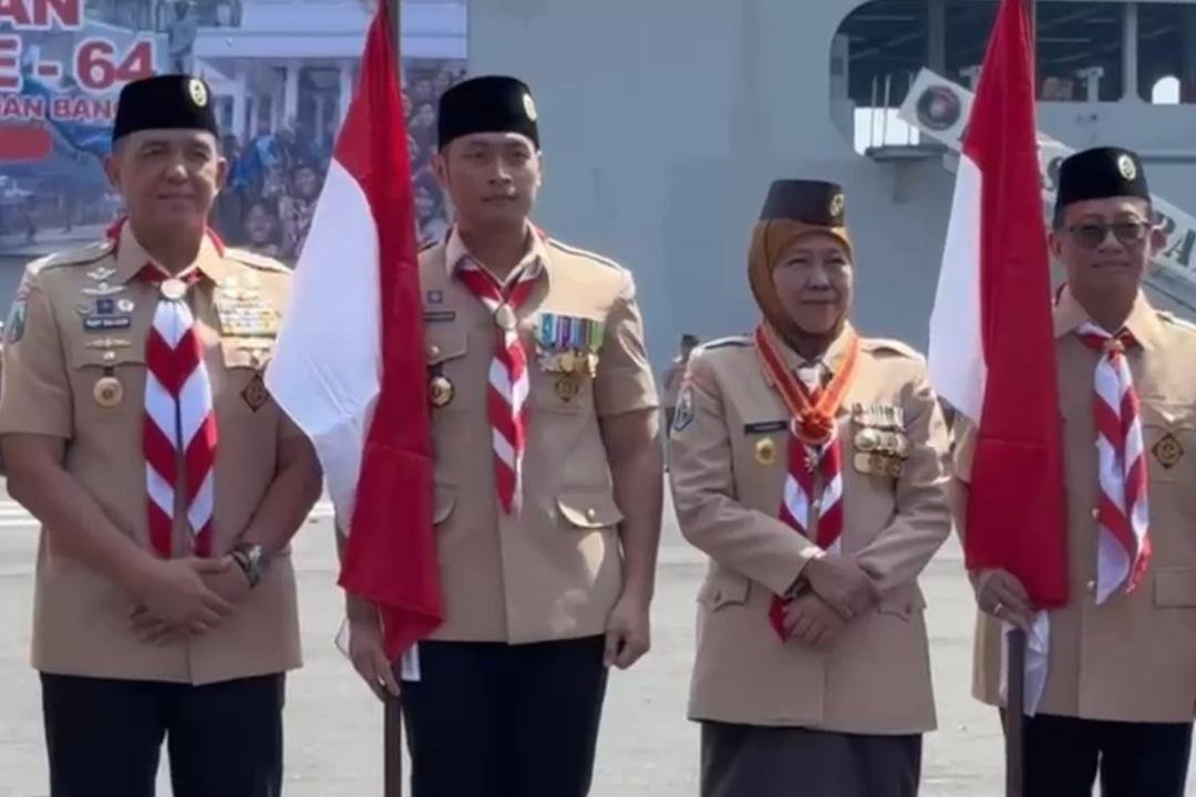 Tuban (IMR) – Bupati Tuban, Aditya Halindra Faridzky atau yang akrab disapa Mas Lindra mengikuti Apel Peringatan Hari Pramuka ke-64 tingkat Jawa Timur yang berlangsung megah di Dermaga Ujung Koarmada II, Surabaya bersama Gubernur Jawa Timur yang juga Ketua Majelis Pembimbing Daerah (Mabida) Pramuka Jatim, Khofifah Indar Parawansa. Kamis (14/08/2025).