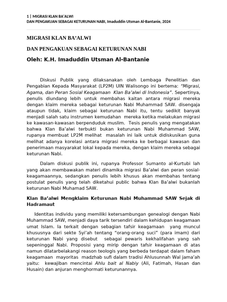 Sejumlah ulama dan peneliti telah melakukan kajian mendalam terkait klaim nasab atau keturunan Nabi Muhammad SAW yang dinyatakan oleh kelompok Baalwi. Klaim ini selama ini menjadi bagian dari identitas masyarakat yang mengaku sebagai keturunan Nabi, namun kini mulai dikaji ulang dengan pendekatan ilmiah.