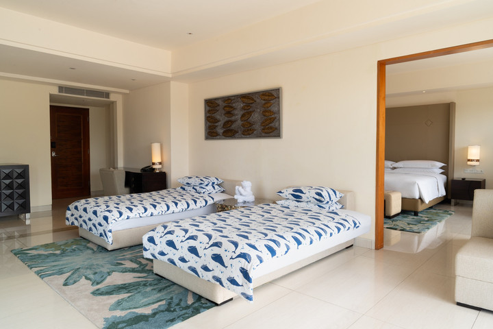 Dengan fasilitas tersebut, setiap anggota keluarga dari anak-anak hingga orang tua memiliki ruang untuk menikmati waktu dengan caranya masing-masing. Bagi tamu yang membutuhkan ruang lebih luas, tersedia pilihan Family Suite yang dilengkapi sofa bed untuk hingga empat orang, area lounge yang nyaman, serta tenda bermain di dalam kamar.