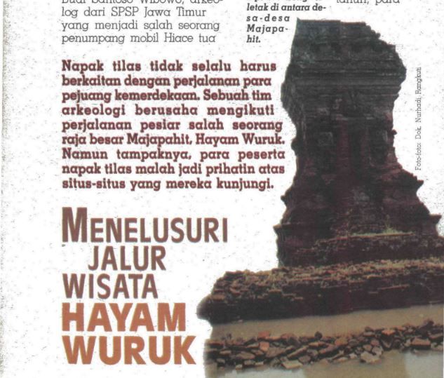 Pada pertengahan tahun 1999, tim arkeologi dari Intisari melakukan napak tilas rute perjalanan Hayam Wuruk ke desa-desa di sebelah timur istana kerajaan. Namun, yang mereka temui adalah kondisi situs-situs yang memprihatinkan.