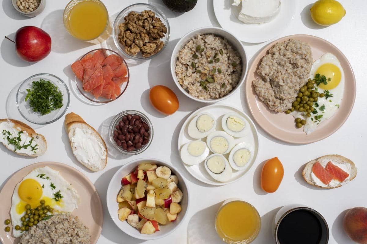 Protein seperti telur, ikan, daging sapi, dada ayam, serta kacang-kacangan membantu tubuh tetap bertenaga sepanjang hari dan mengurangi rasa lapar berlebihan.Konsumsi sayur dan buah-buahan