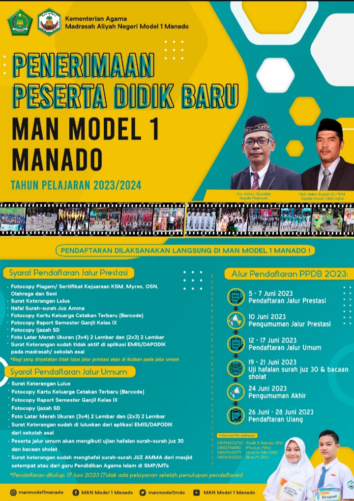 Bagi calon peserta didik yang membutuhkan informasi tambahan, dapat mengunjungi media sosial resmi MAN Model 1 Manado.