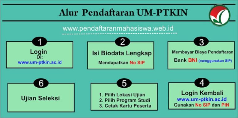 - Cara Pendaftaran: Peserta melakukan pendaftaran secara mandiri pada laman https://um.ptkin.ac.id.