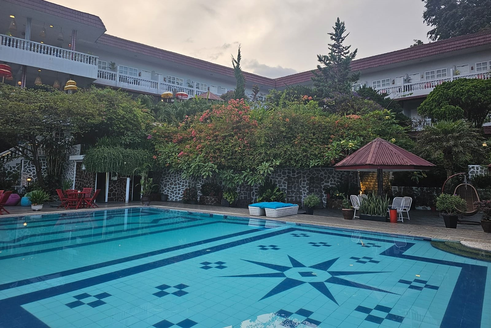 Untuk melengkapi kenyamanan, pengelola hotel juga melengkapi berbagai fasilitas seperti kolam renang. Bahkan tamu yang menginap pun bisa melakukan olah raga jalan pagi yang menyegarkan sembari melihat keindahan kampung warna-warni di sekitar hotel. Suasana akan makin sempurna saat menikmati sunset atau pemandangan matahari terbenam yang sangat memukau di Danau Toba.