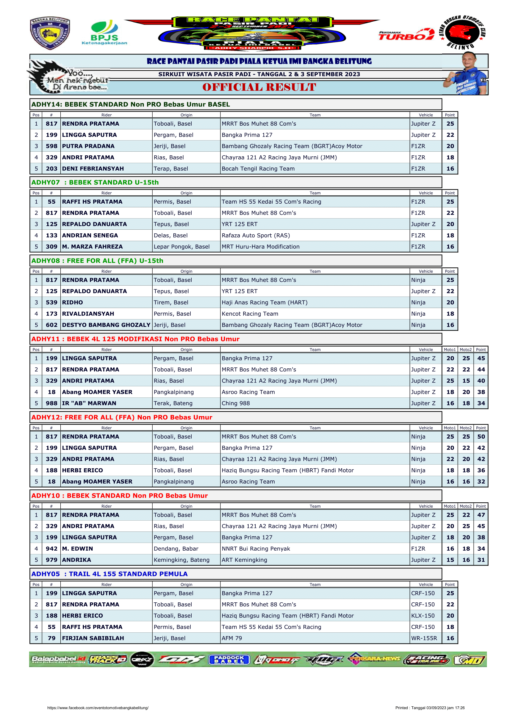 Melihat tingginya animo tersebut, IMI Babel memperluas penyelenggaraan event serupa ke wilayah lain, yakni Pulau Belitung. “Kami sudah berkoordinasi dengan IMI kabupaten di Belitung. Insya Allah bulan Mei nanti akan kita gelar juga di sana,” ungkapnya.