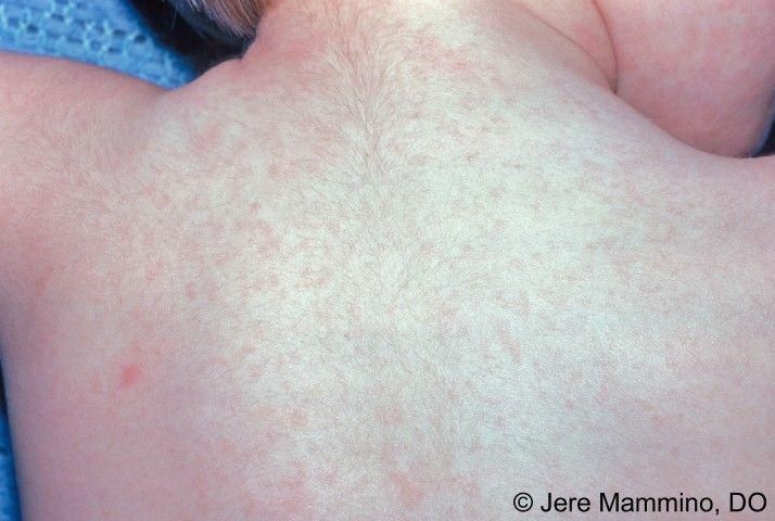 Ruam campak dan roseola bisa terlihat mirip karena keduanya bersifat makulopapular. Namun, ada perbedaan warna dan pola penyebaran ruam. Ruam campak biasanya berwarna merah-cokelat, sedangkan ruam roseola lebih berwarna merah jambu-merah.