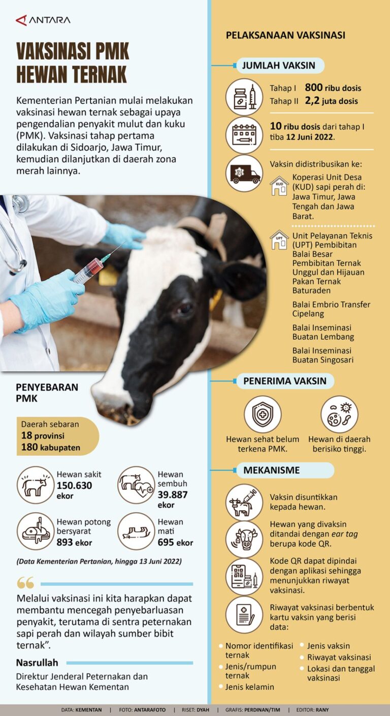 Pemerintah Kabupaten Jombang, Jawa Timur, kini mengambil langkah-langkah penting untuk menangani wabah Penyakit Mulut dan Kuku (PMK) yang kembali muncul. Dinas Peternakan (Disnak) setempat telah mempercepat vaksinasi massal terhadap ternak, dengan penerimaan 18.000 dosis vaksin PMK tahap pertama dari pemerintah pusat.