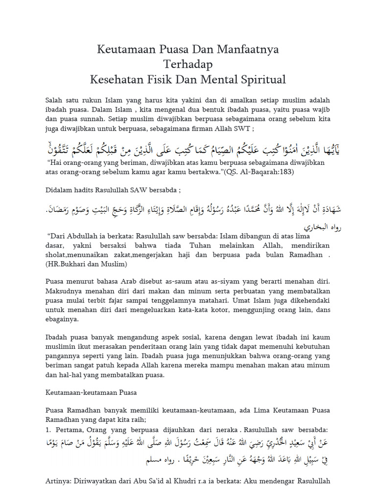 Harapan bagi bangsa Indonesia adalah agar puasa tidak berhenti sebagai ritual musiman, tetapi menjadi budaya karakter dalam keluarga. Karena ketika keluarga kuat, bangsa akan tegak. Ketika hati bersih, negeri akan jernih. Ketika puasa dijalani dengan kesadaran, Indonesia tidak hanya bertahan, ia akan maju dan bangkit dalam pergaulan antar bangsa. Dan kebangkitan itu dimulai dari rumah, dari keluarga.